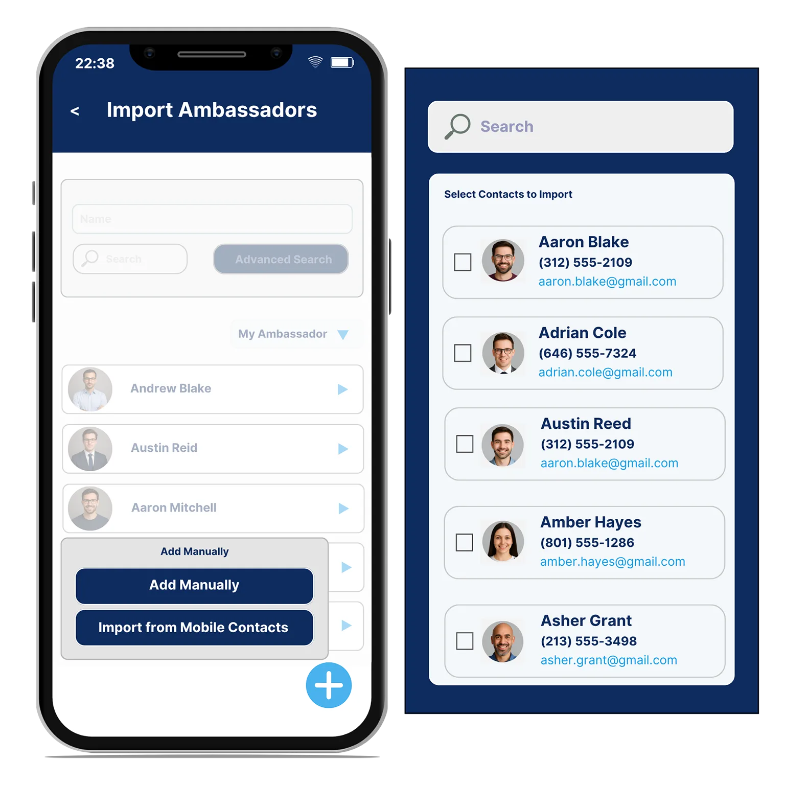 No messy migrations. No complicated onboarding. BAMP makes it easy to import your existing phone Contacts into ambassador lists, teams, and more—so you can hit the ground running.