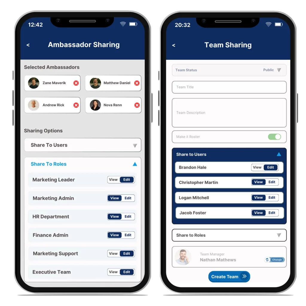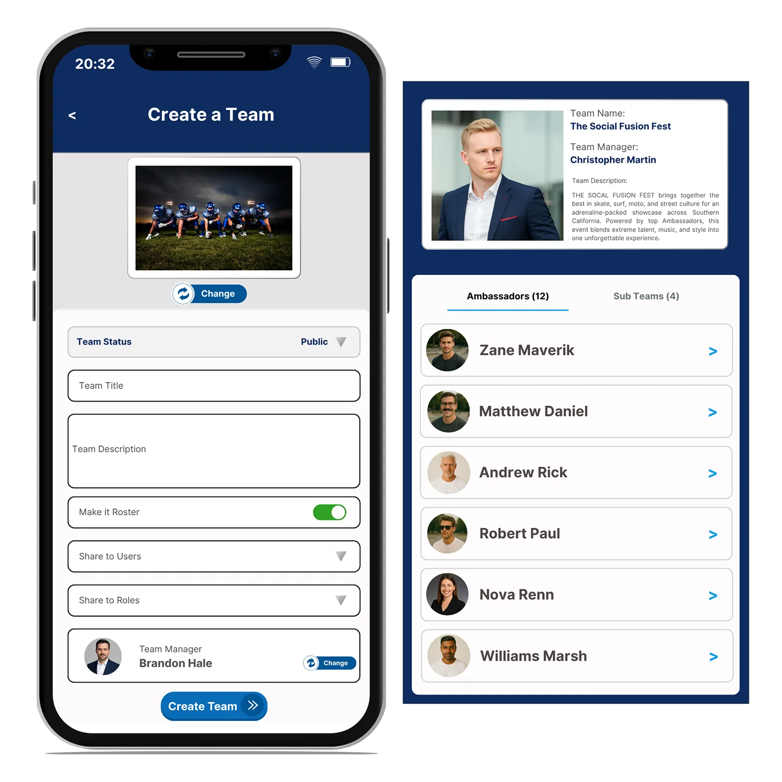 From full Teams to Sub-Teams and Roster views, manage Ambassadors based on ownership, visibility, and responsibilities. Team Managers can add Ambassadors, create Sub-Teams, and control workflows.