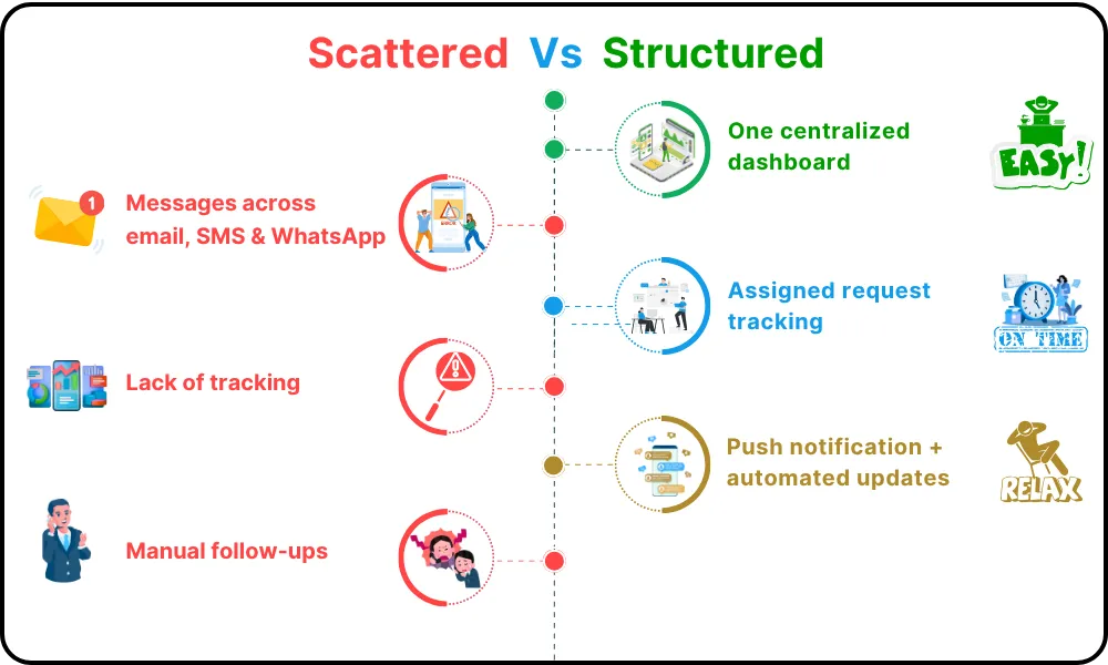 Send the right request, track progress instantly, and keep everything organized—all without juggling outside tools. It’s not just communication—it’s clear, action-driven alignment that keeps your team moving forward.