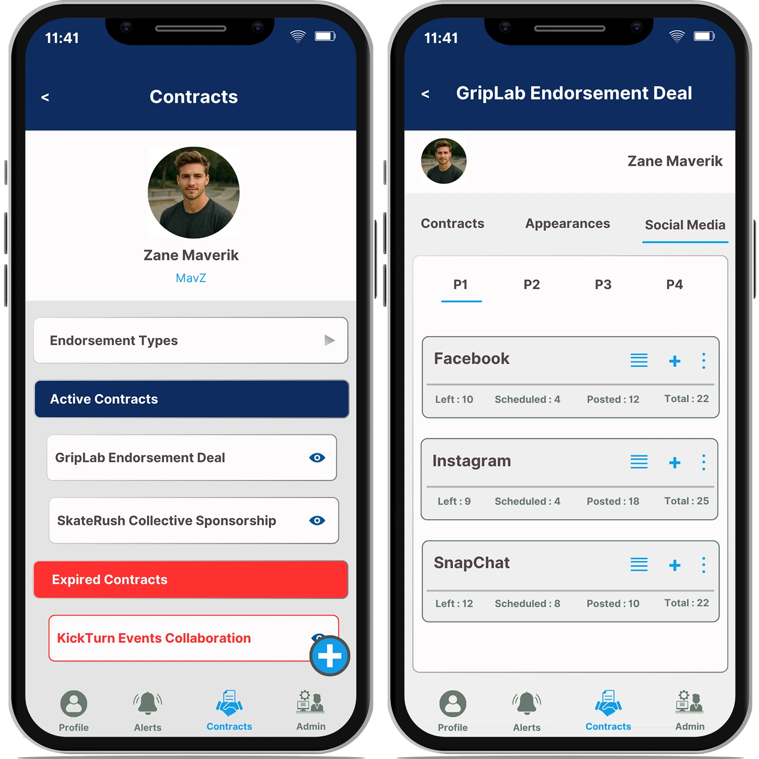 Social posts are organized into Phases, with Scheduled and Normal slots. Content Managers use these to plan content, align media assets, and collaborate with Ambassador Managers on deliverables.