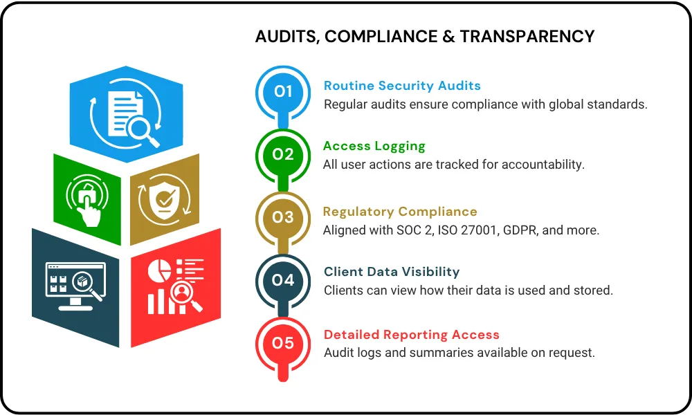 BAMP conducts regular security audits, maintains detailed access logs, and ensures compliance with international standards. Our transparent reporting provides clients with full visibility into how their data is handled and protected.