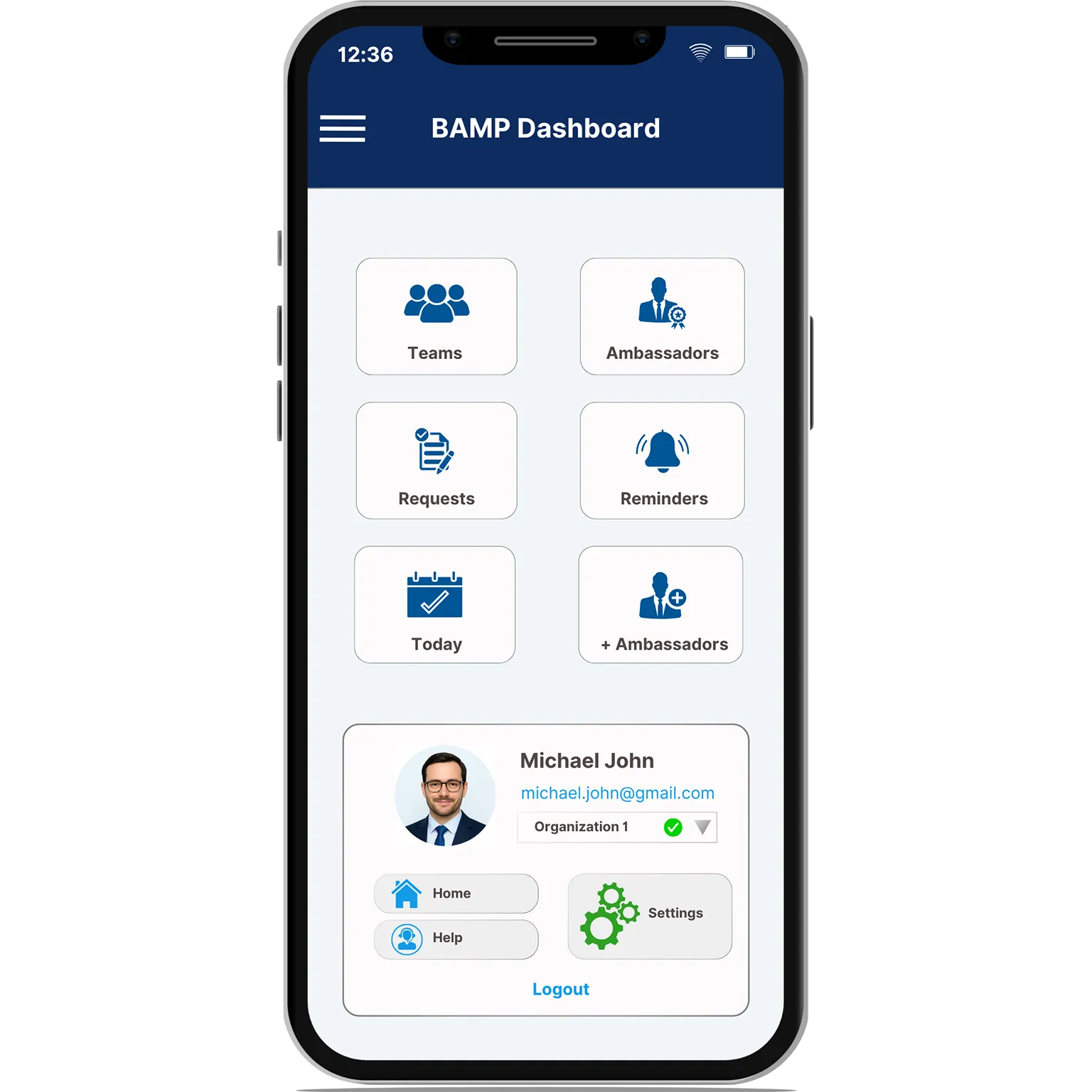 The BAMP Dashboard brings everything you need into one clean, powerful interface—so you can act fast, stay organized, and move between tasks without missing a beat. From managing teams to tracking reminders, it’s your mission control for everything that matters.
